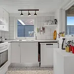 Die 3 Bedroom Beautiful Home In Otterup ist mit einer kompletten Küche ausgestattet, die über eine Mikrowelle, eine Kaffee-/Teemaschine und einen Kühlschrank verfügt.